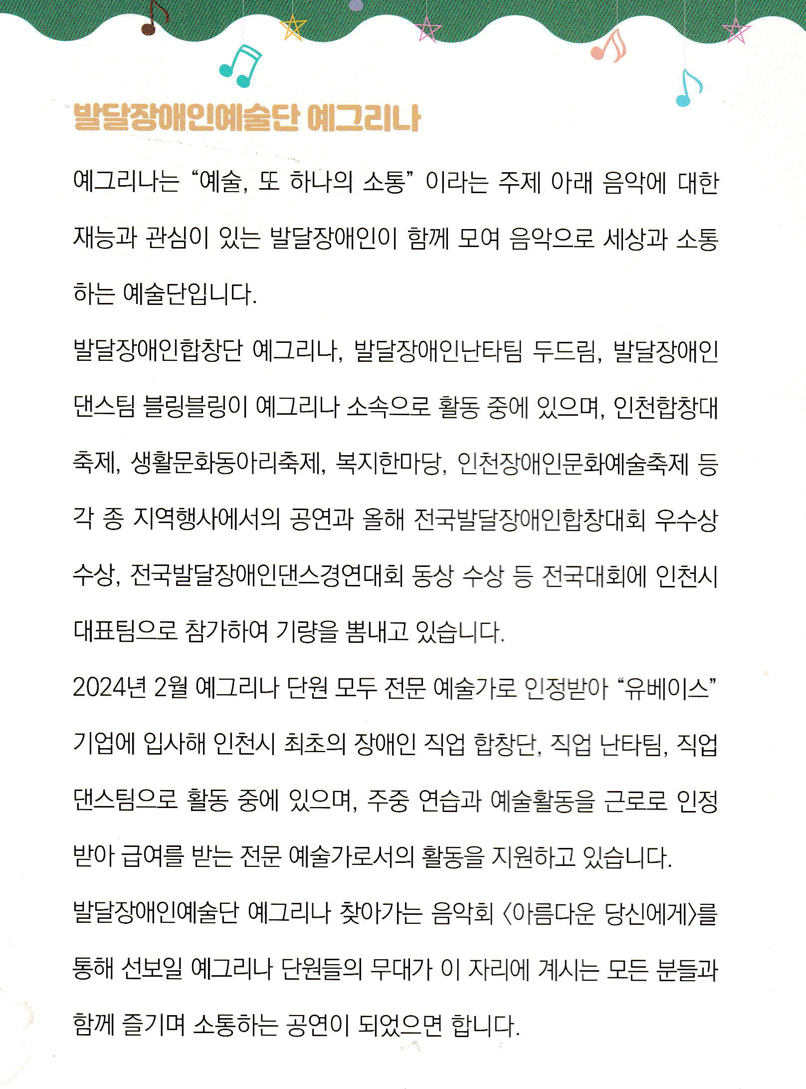 인천 발달장애인합창단 ‘예그리나’ “장애와 예술, 그리고 자립이라는 이름의 화음”