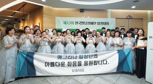 예그리나 합창단은 성인 발달장애인 중심으로 구성된 예술단체다. 2003년 ‘다함께합창단’이라는 이름으로 시작됐으며, 2018년부터 현재의 명칭으로 활동하고 있다. ‘예그리나’는 순우리말로 ‘서로 사랑하는 사이’를 뜻한다. 단원은 40여 명. 이 중 장애인 단원은 30명 이상이며, 현재 22명이 유베이스 소속 정식 예술 근로자로 활동 중이다. 나머지 단원들도 별도의 직업을 갖고 있으며, 일부는 주 1회 정기연습만 참여한다. 비장애인 멘토 10여 명은 자원봉사자로서 화음을 맞추고, 손을 맞잡고, 무대에서 함께 노래하는 ‘동료 예술가’다.